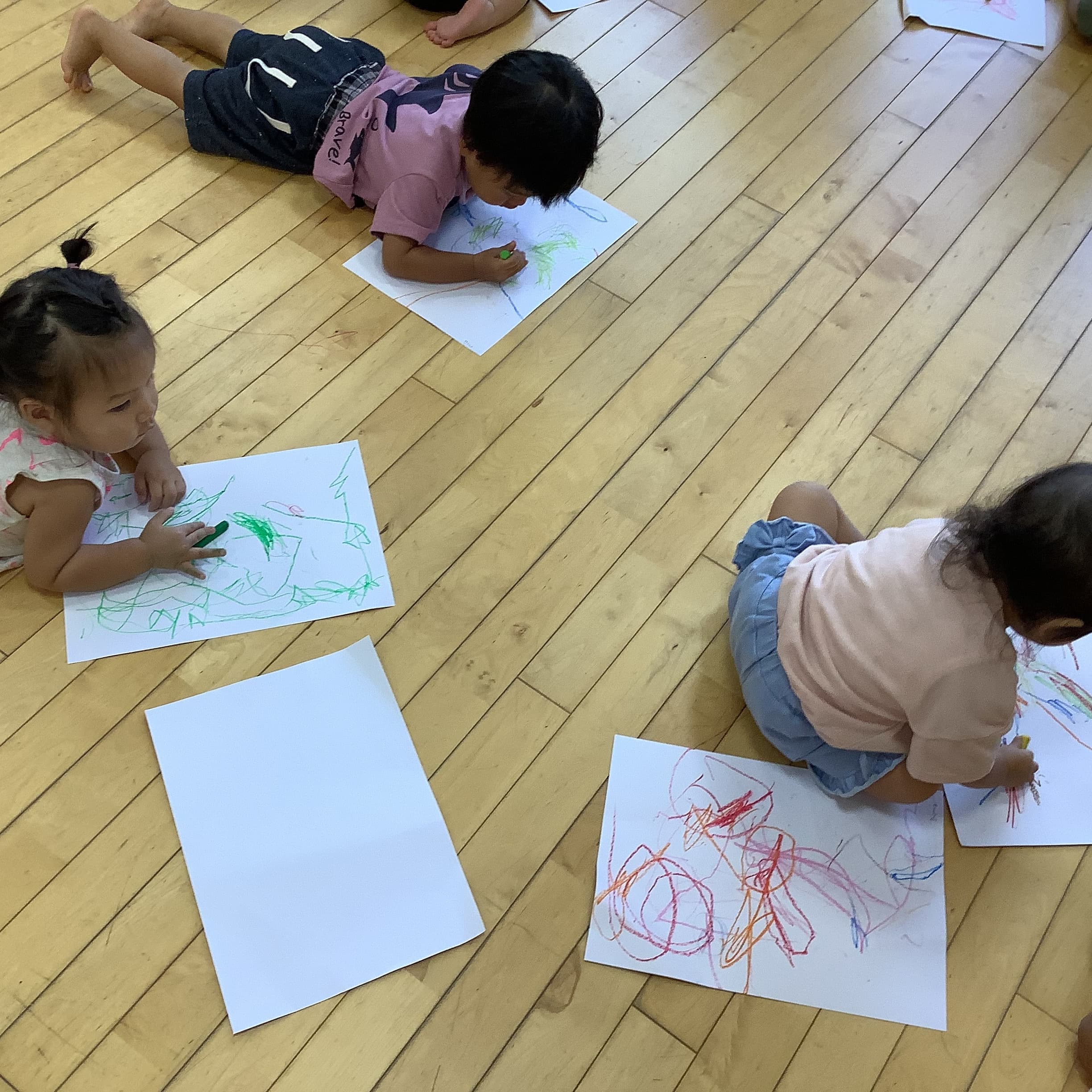 リトミックの基本活動である「即時反応」「模範活動」を中心にレッスンする中で、”集中して” 聴く→観る→感じる→表現し行動する力を身に着けます。