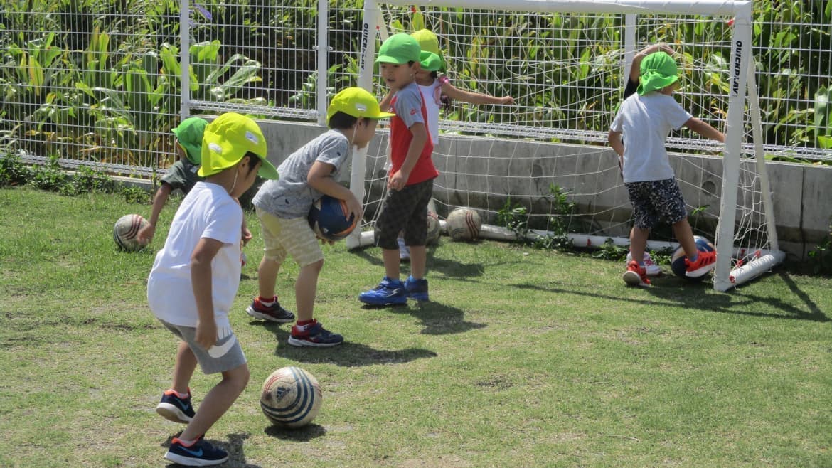 サッカーの基本やルールを楽しく学びながら、広いフィールドで思いっきり体を動かします。